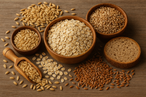 Whole grains such as oats, quinoa, brown rice, and whole wheat bread are rich in fiber — particularly beta-glucan, a type of soluble fiber that helps lower cholesterol and improve heart health.
