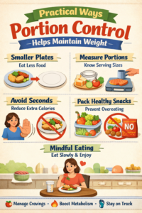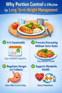Portion control is one of the most powerful tools for long-term weight management because it is practical, flexible, and sustainable. It respects the body’s natural signals and supports both physical and mental well-being.