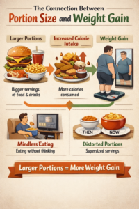 When portion sizes are uncontrolled, calorie intake increases gradually. This slow, unnoticed increase is one of the main reasons people gain weight over time.